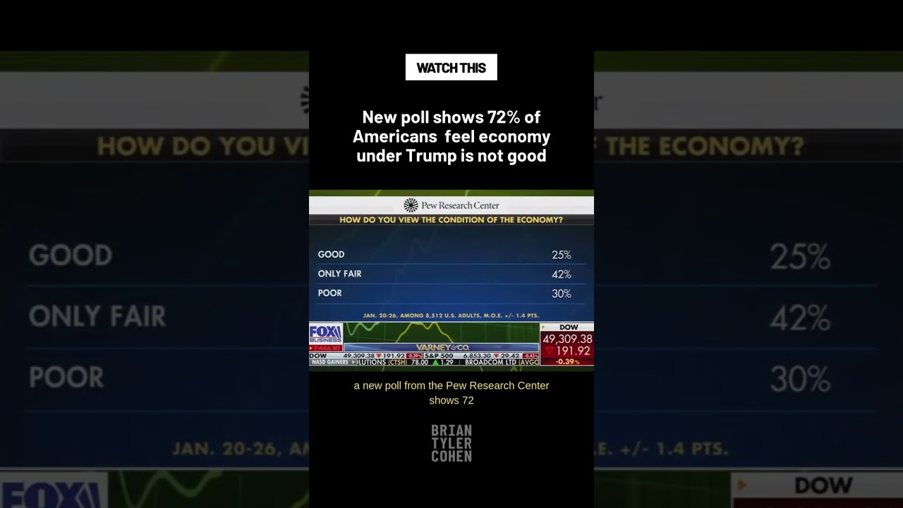 Summary: A new poll shows that 72% of Americans feel the economy under Trump is not good. The video is a YouTube Shorts clip.