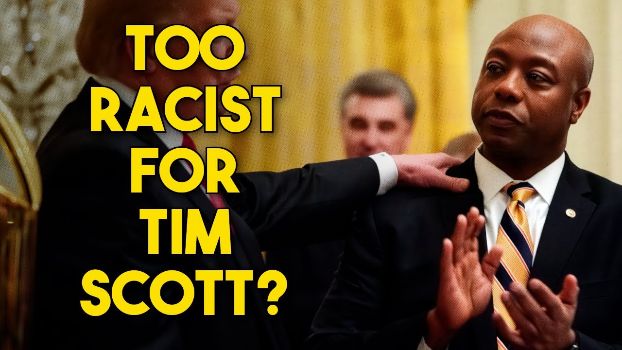 Video essay exploring whether Trump could cross a racial line for Senator Tim Scott. The description promotes channel memberships, Patreon, PayPal, and social links, plus links to Late Seating and The Ensign’s Log podcasts and the YouTube video URL. Tags include politics, Trump, Tim Scott.