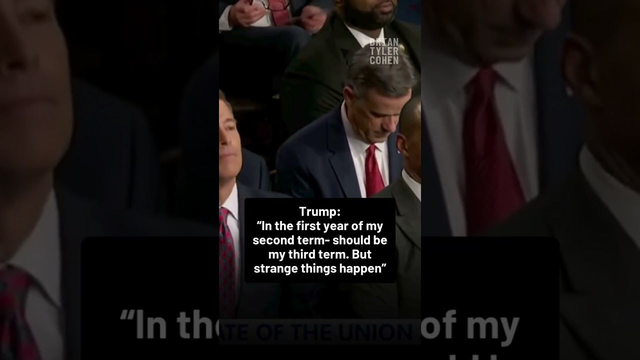 A YouTube Shorts clip quotes Donald Trump saying that in the first year of his second term he ‘should be my third term,’ followed by ‘But strange things happen.’ The description tags ‘#shorts’ and provides the video URL.