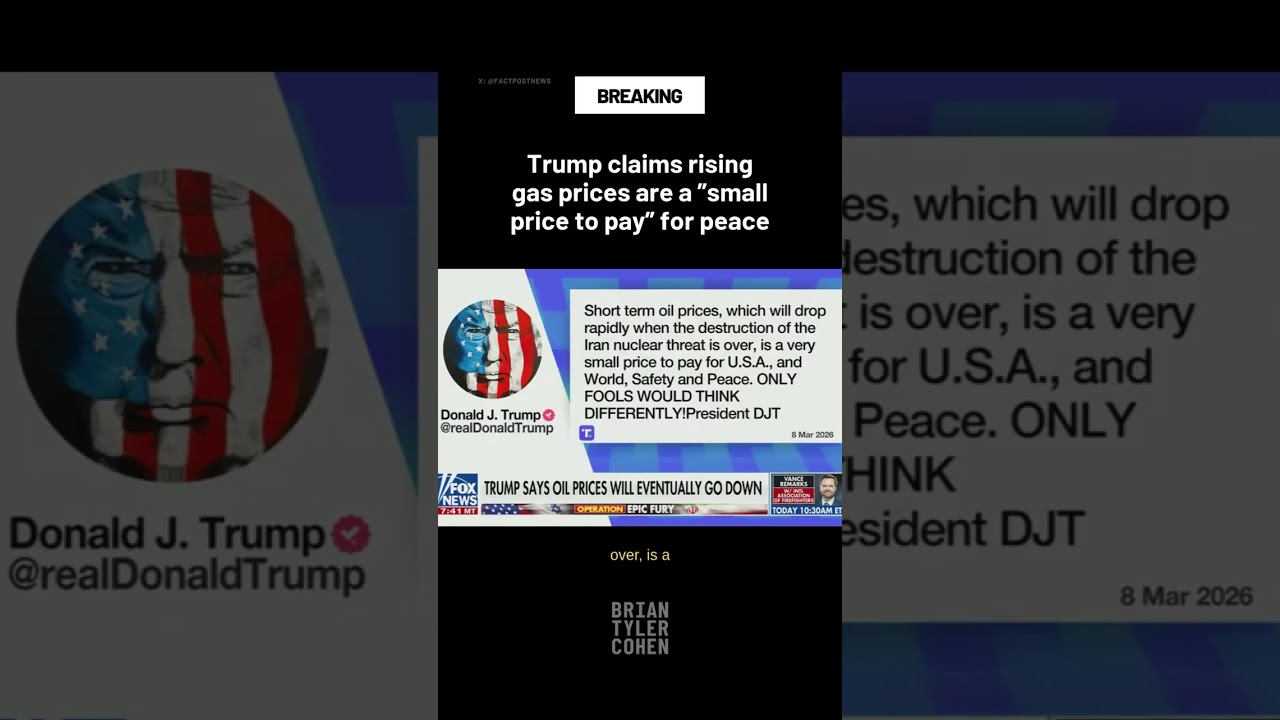 This YouTube Shorts clip features Donald Trump claiming that rising gas prices are a ‘small price to pay’ for peace, framing fuel costs as a trade-off for diplomatic or military outcomes. The description labels it as and provides the video URL.