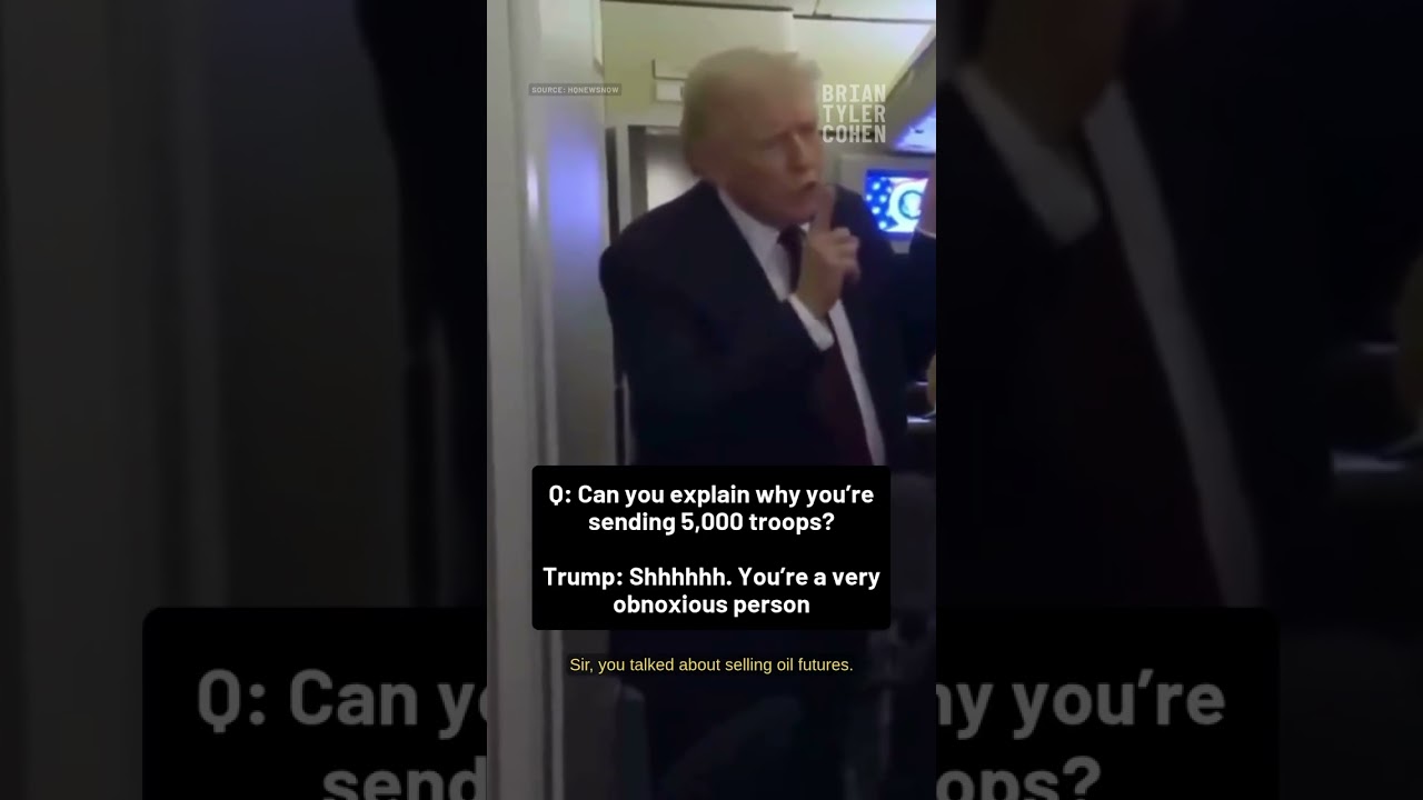 A YouTube Shorts video titled “Trump RIPS reporter for asking simple question about Iran” shows Donald Trump criticizing a reporter for asking about Iran. The description tags it as Shorts and provides the URL https://www.youtube.com/watch?v=MDKdRCnPWZE.