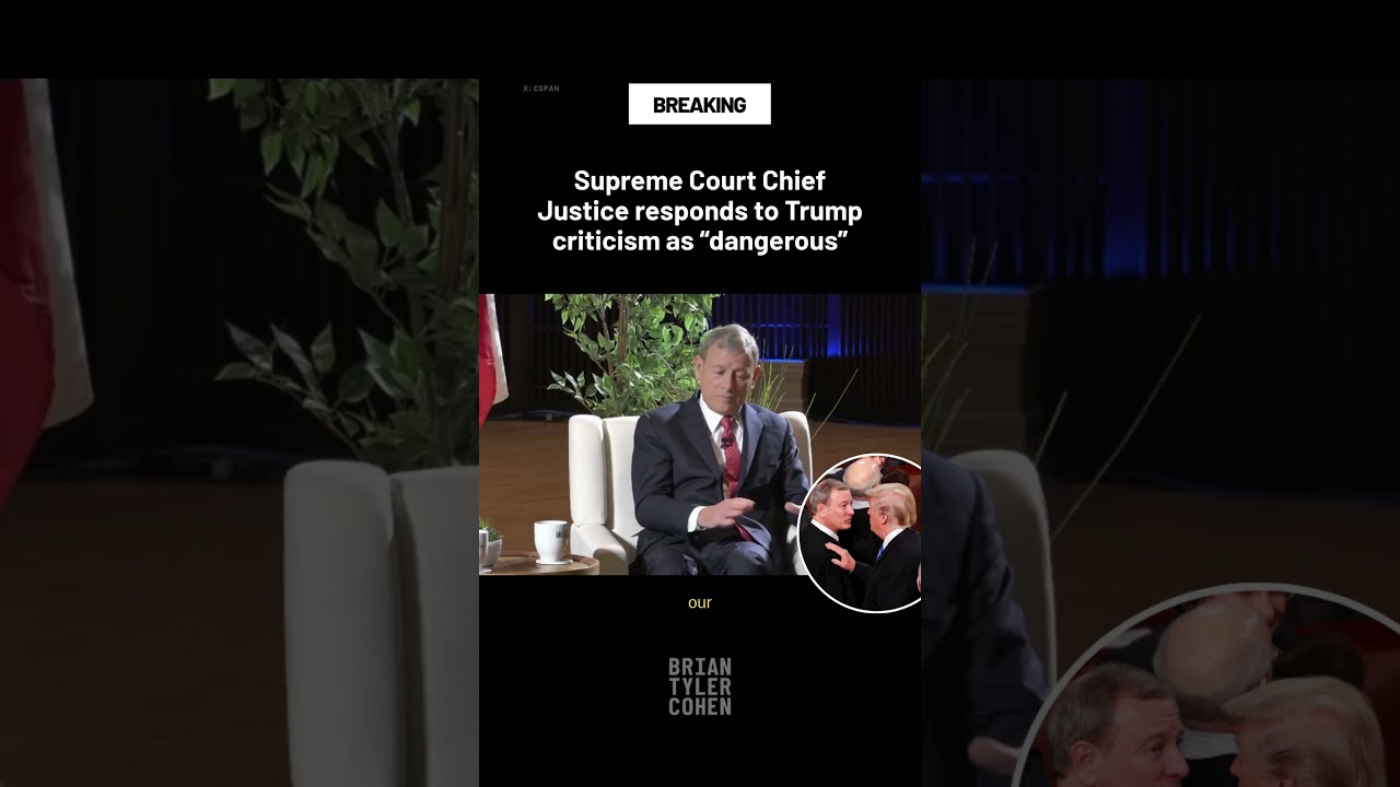 An uploaded YouTube Shorts clip titled “Supreme Court Chief Justice responds to Trump criticism as dangerous” suggests the Chief Justice has replied to Donald Trump’s criticisms by labeling them dangerous. The description tags include “#shorts.” Video URL: https://www.youtube.com/watch?v=4_nS0YUuBJ0
