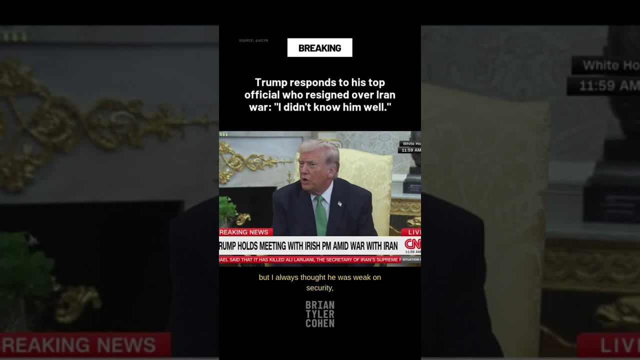The video shows Trump responding to a top official’s resignation over the Iran war, saying, “I didn’t know well.”