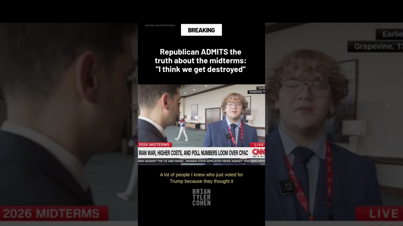 A YouTube Shorts clip features a Republican allegedly admitting the midterms will be a defeat, citing the quote “I think we get destroyed.” The video’s description simply lists ‘#shorts’ and includes the YouTube link.