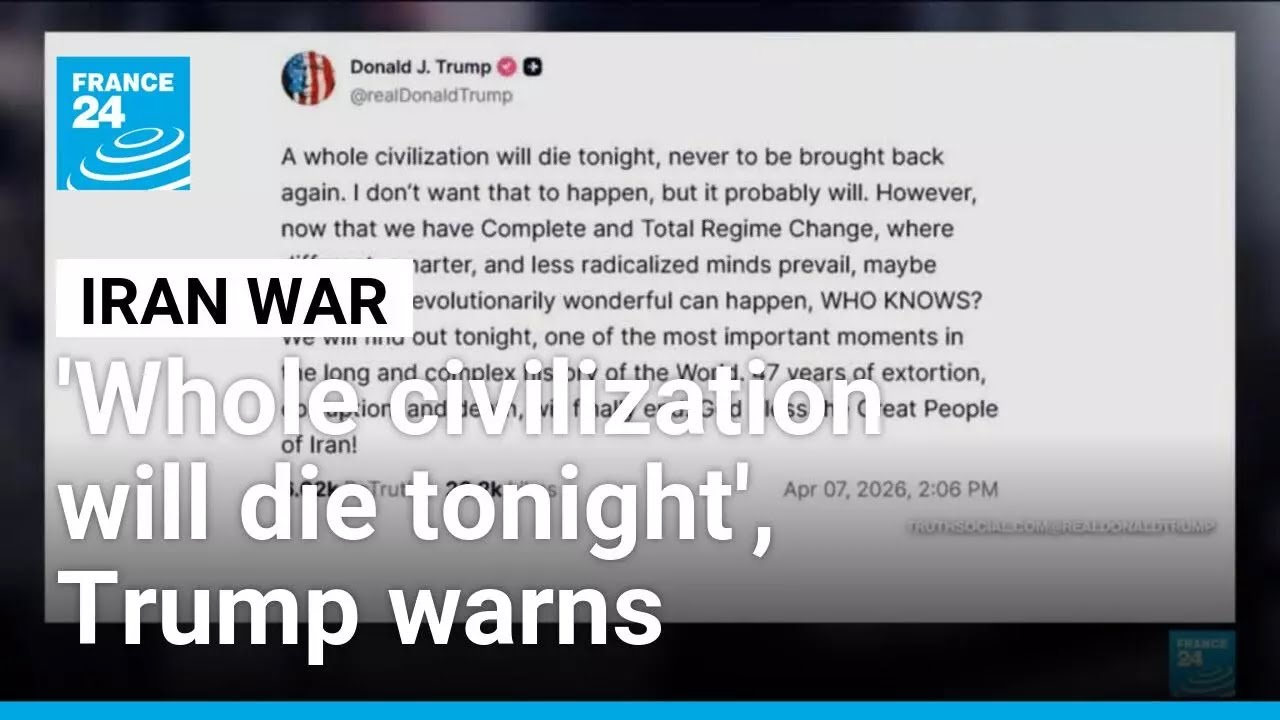 Newsflash: “Trump warns a ‘whole civilization will die tonight’ if a deal with Iran isn’t reached • FRANCE 24”