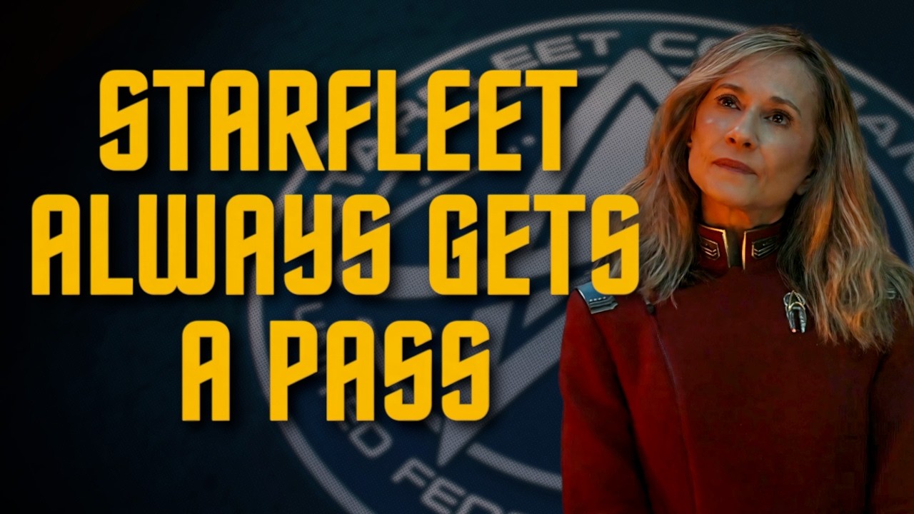 The video argues modern Star Trek raises hard questions about the Federation and Starfleet but avoids confronting them in practice, citing series like Picard, Strange New Worlds, and Starfleet Academy. It contends writers repeatedly back down, undermining the potential for meaningful critique.