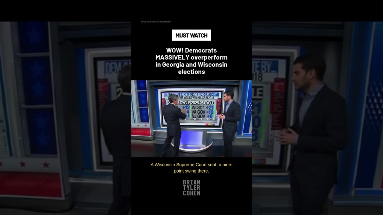 This YouTube Shorts video asserts that Democrats massively overperformed in the Georgia and Wisconsin elections, implying unexpectedly strong results in those races. The piece is framed as a brief clip under the description category ‘#shorts’ and includes a link to the video.