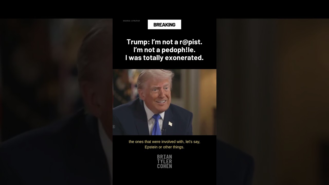 Trump enforces absolution claims, insisting he’s not a rapist or pedophile and asserting total exoneration. This short clip, labeled as a YouTube Shorts video, features his denial and defense. URL: https://www.youtube.com/watch?v=7_X09Zcm8jc