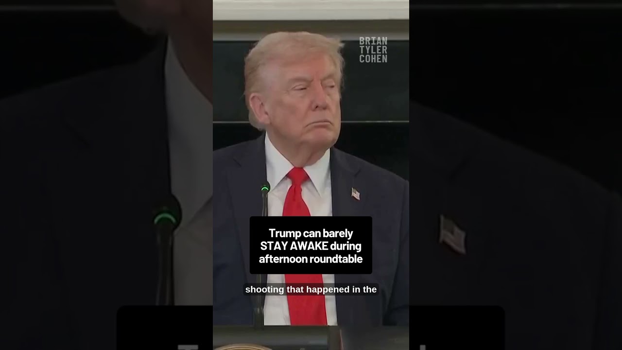 The video titled “Trump can barely STAY AWAKE during afternoon roundtable” captures a moment where Donald Trump appears visibly tired during a discussion. The content highlights his struggle to maintain alertness, suggesting a lack of energy during the event.